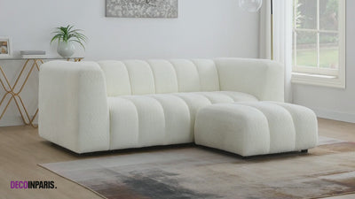 Découvrez le pouf en tissu bouclette écru AELIS, un accessoire élégant et fonctionnel, pensé pour compléter votre espace de vie avec douceur et style.