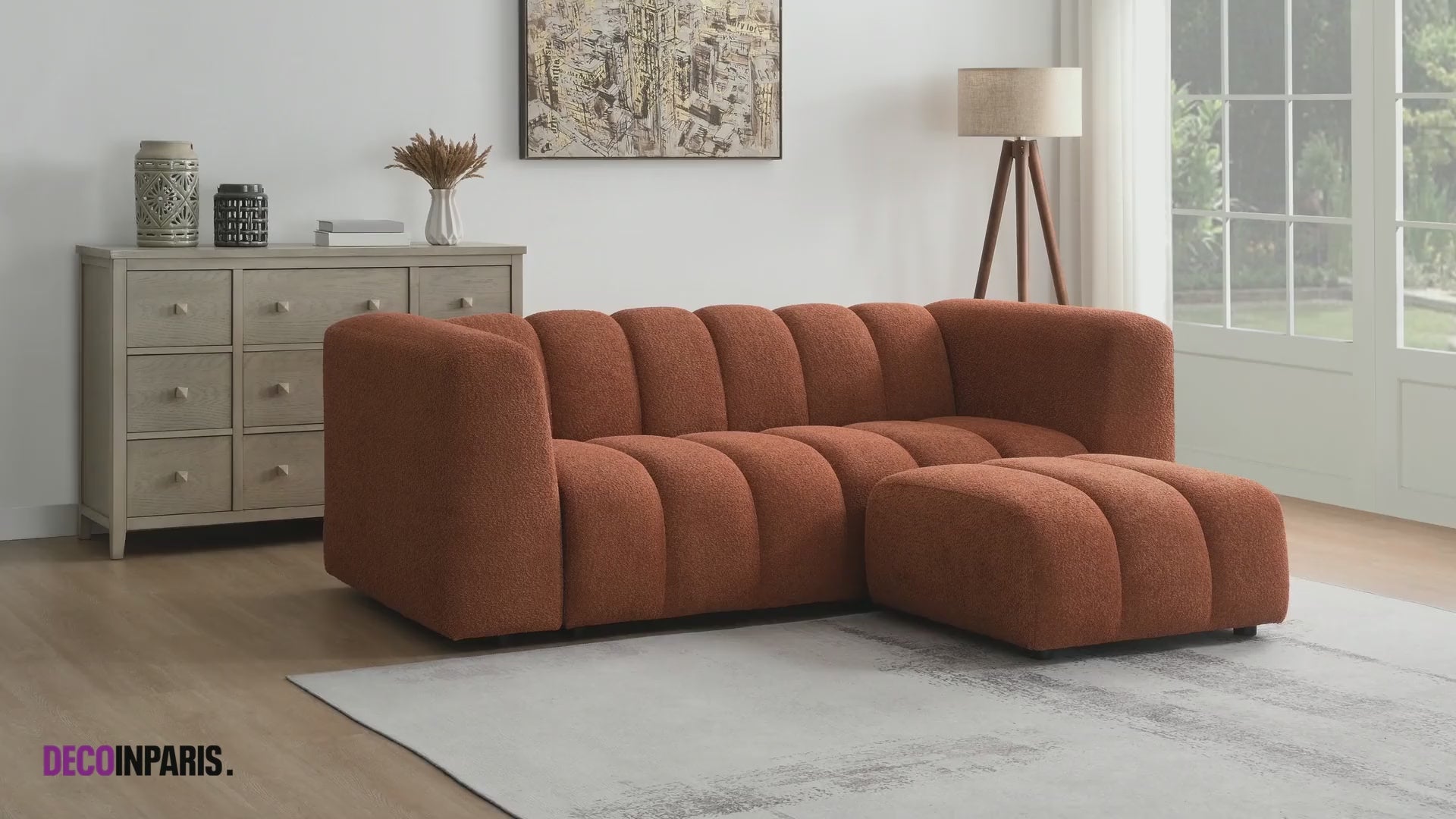 Découvrez le pouf en tissu bouclette terracotta AELIS, un accessoire élégant et fonctionnel, pensé pour compléter votre espace de vie avec douceur et style.
