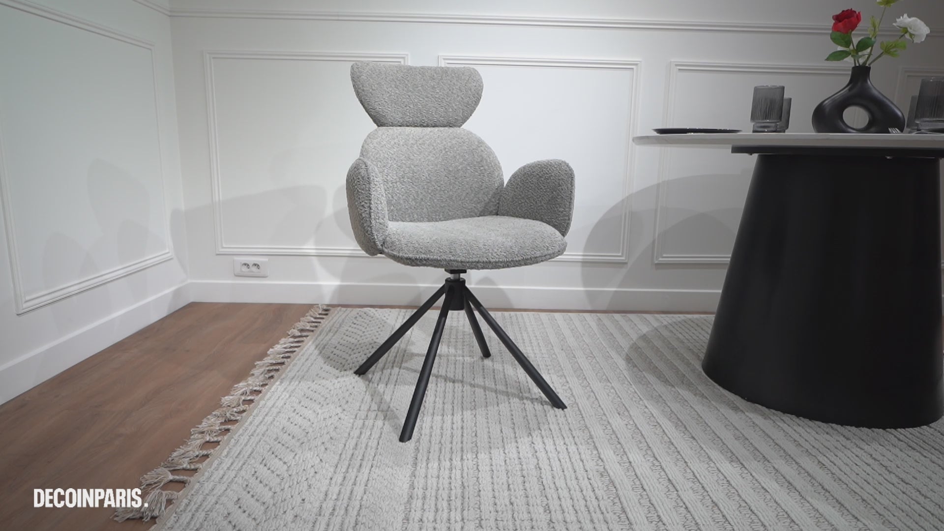 Il suo tessuto grigio effetto pelle di pecora dona un'atmosfera calda, mentre la sua funzione girevole offre grande libertà di movimento, rendendo piacevole la tua esperienza culinaria. Con il suo stile raffinato, la sedia MAGY si adatta armoniosamente a tutti gli stili di arredamento, porterà un tocco moderno e avvolgente ai vostri spazi.