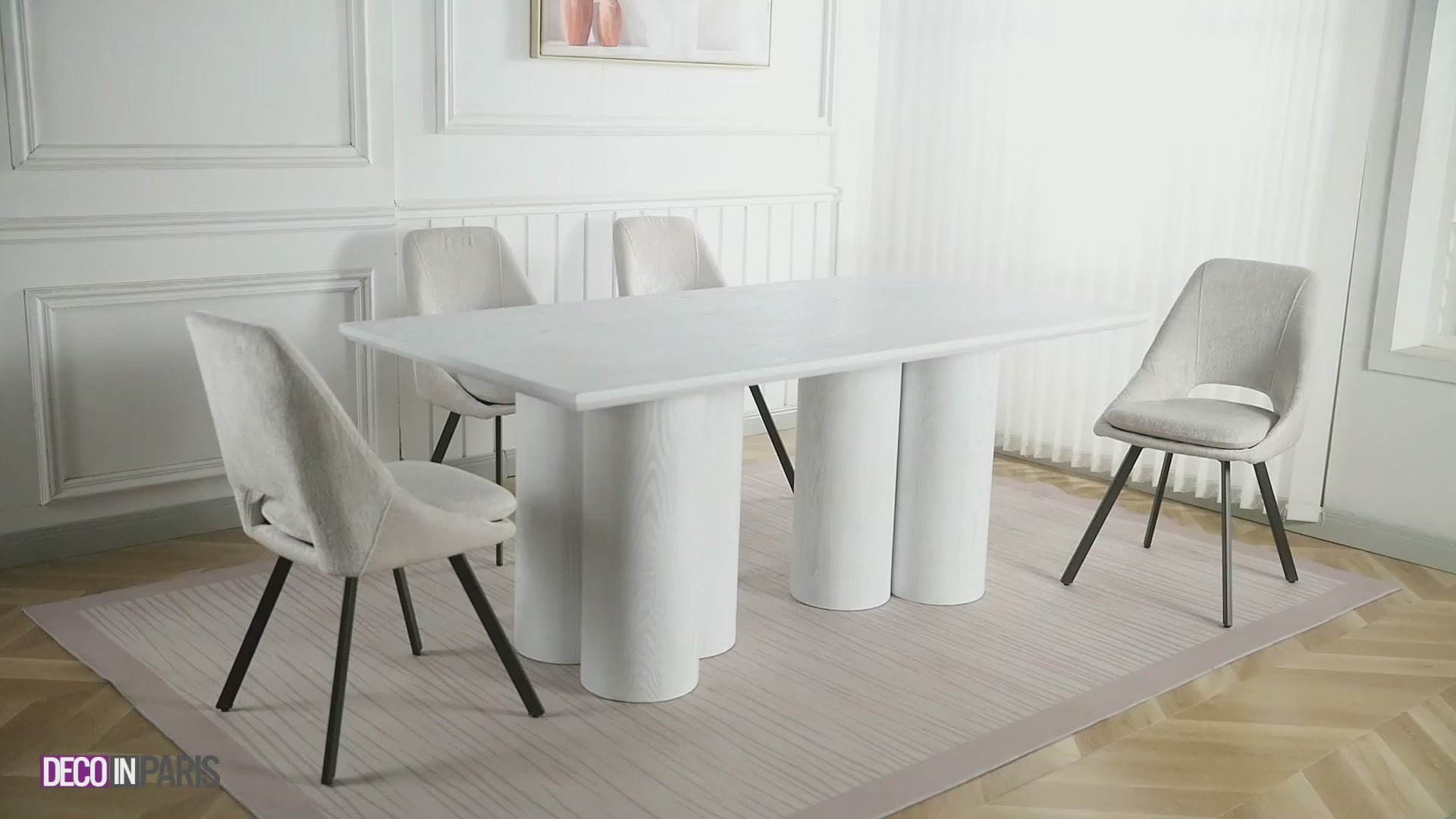 Pour sublimer son design, associez la table ROSALIA à des chaises en avec pieds en métal noir ou en tissu doux, et créez ainsi un espace repas chaleureux et accueillant.