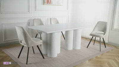 Pensée pour accueillir jusqu'à 6 convives, la table ROSALIA se distingue par ses pieds aux formes organiques et arrondies. Ce design combine originalité et stabilité, insufflant une esthétique unique à votre intérieur.