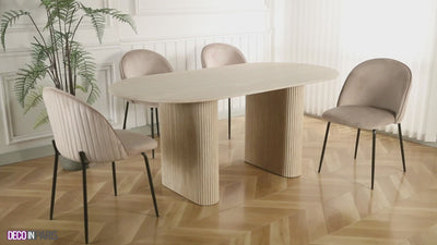 Accueillant jusqu'à 8 personnes, le design unique de la table ELMA est sublimé par ses pieds larges et ovales, conçus dans un style contemporain et épuré. Ces pieds robustes et harmonieux apportent à la fois stabilité et une touche artistique à l'ensemble, tout en renforçant l'esthétisme moderne de la pièce.