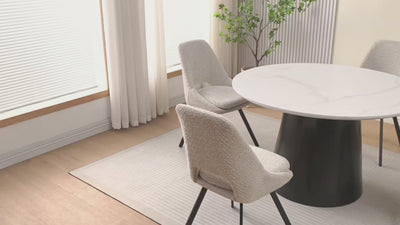 Son plateau en bois MDF effet marbre, offre une surface raffinée et lumineuse, parfaite pour sublimer votre salle à manger ou votre cuisine.