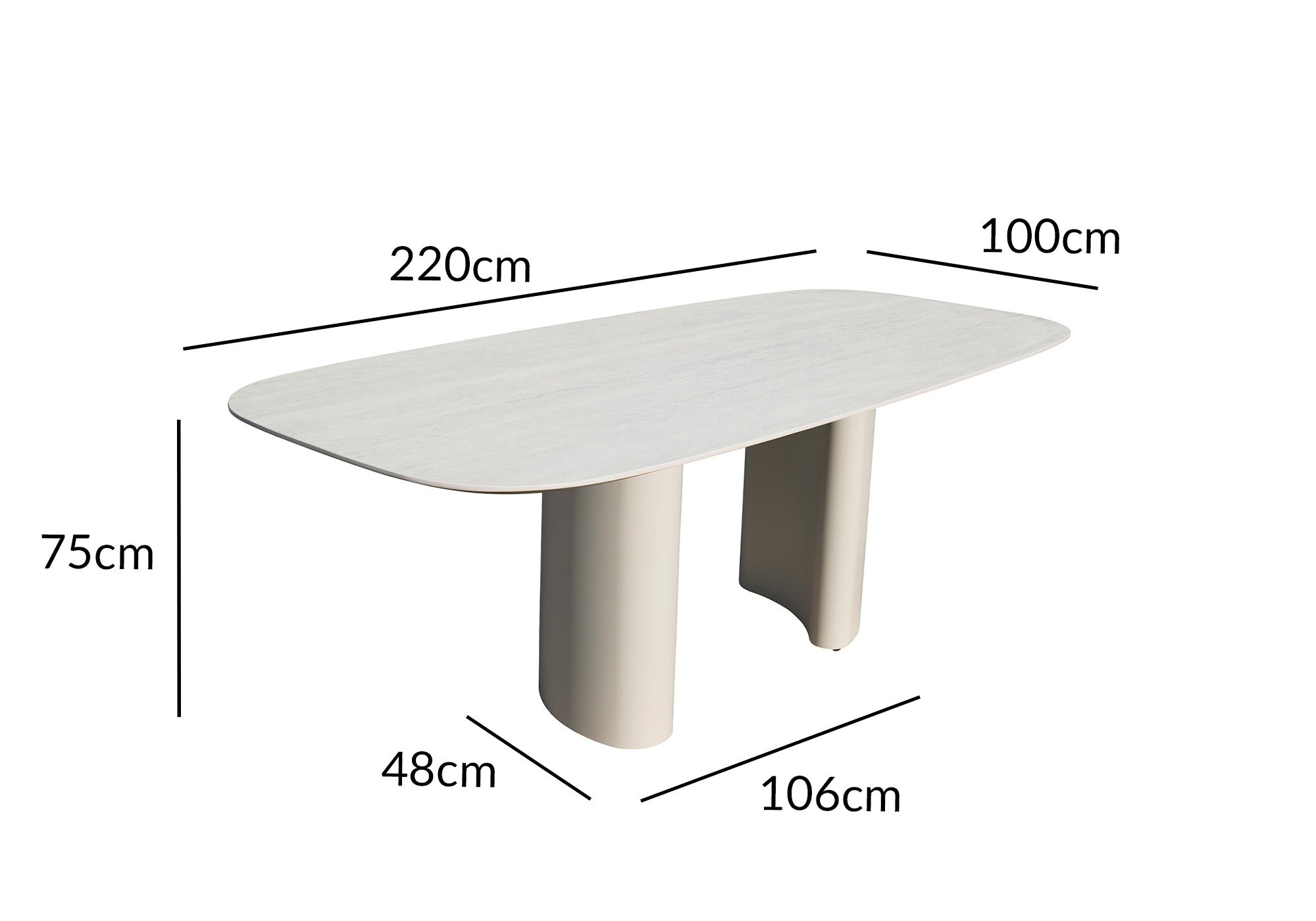 Tavolo da pranzo in ceramica beige con gambe in metallo grigio per 10 persone AZIEL
