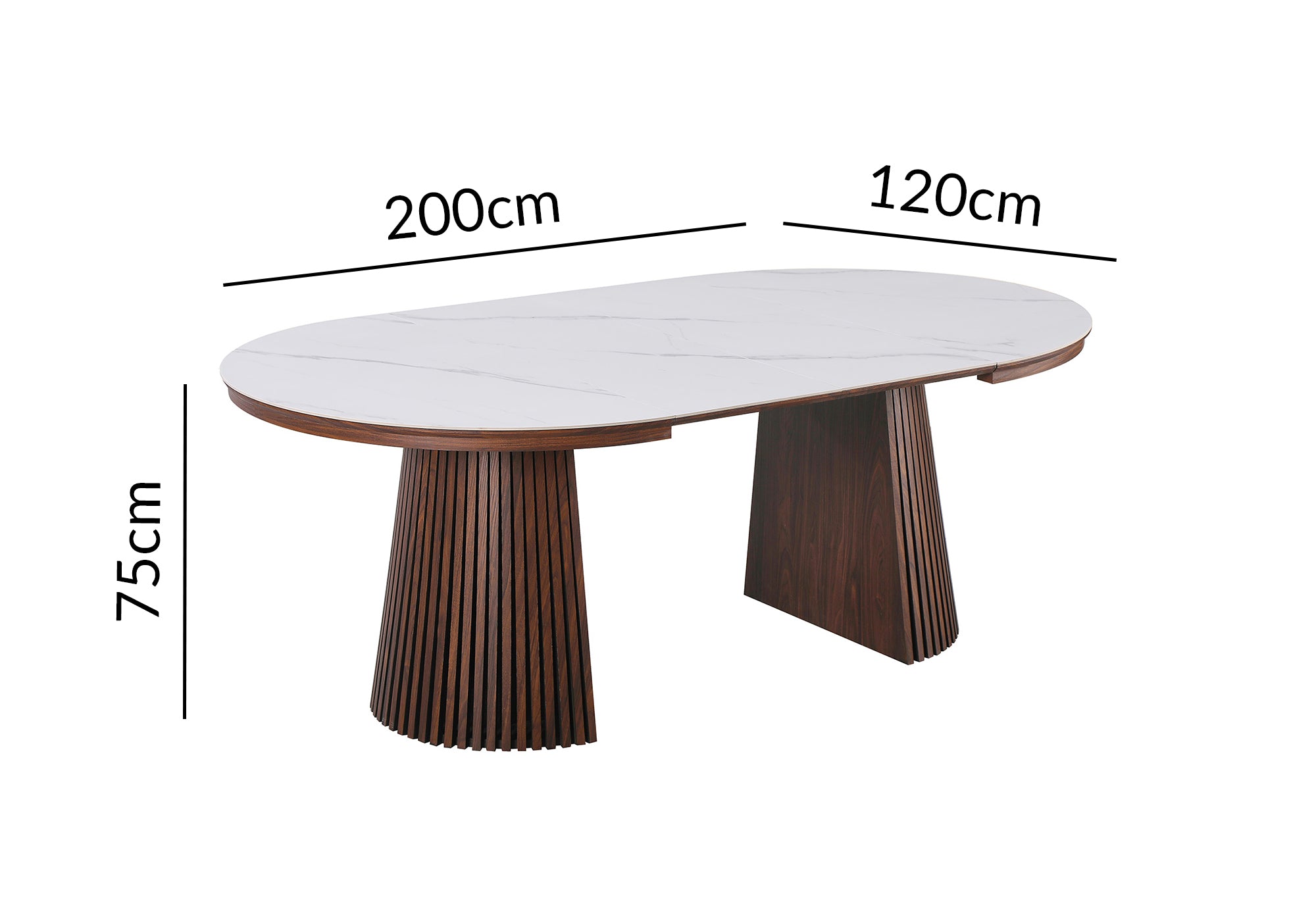 Tavolo da pranzo rotondo allungabile in legno scuro con piano in ceramica bianca HEKA